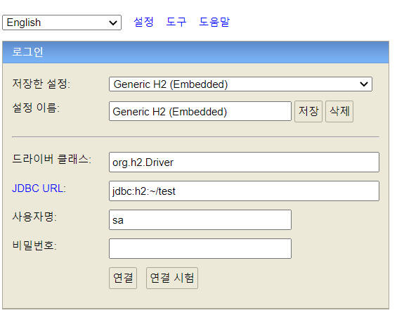 <!-- jdbc driver를 h2 dirver로 설정 -->
