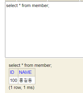 먼저 Member 객체를 생성한 후 값을 셋팅하고 EntityManager에 persist로 객체를 전달하면 Database에 값이 저장되는것을 확인 할 수 있다.
