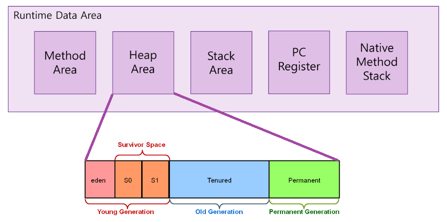 Garbage Collector가 관리하는 Heap 영역은 크게 Young, Old, Permanent 영역으로 나눌 수 있습니다.
